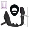 Black cock ring with butt plug and dotted perineum bridge.