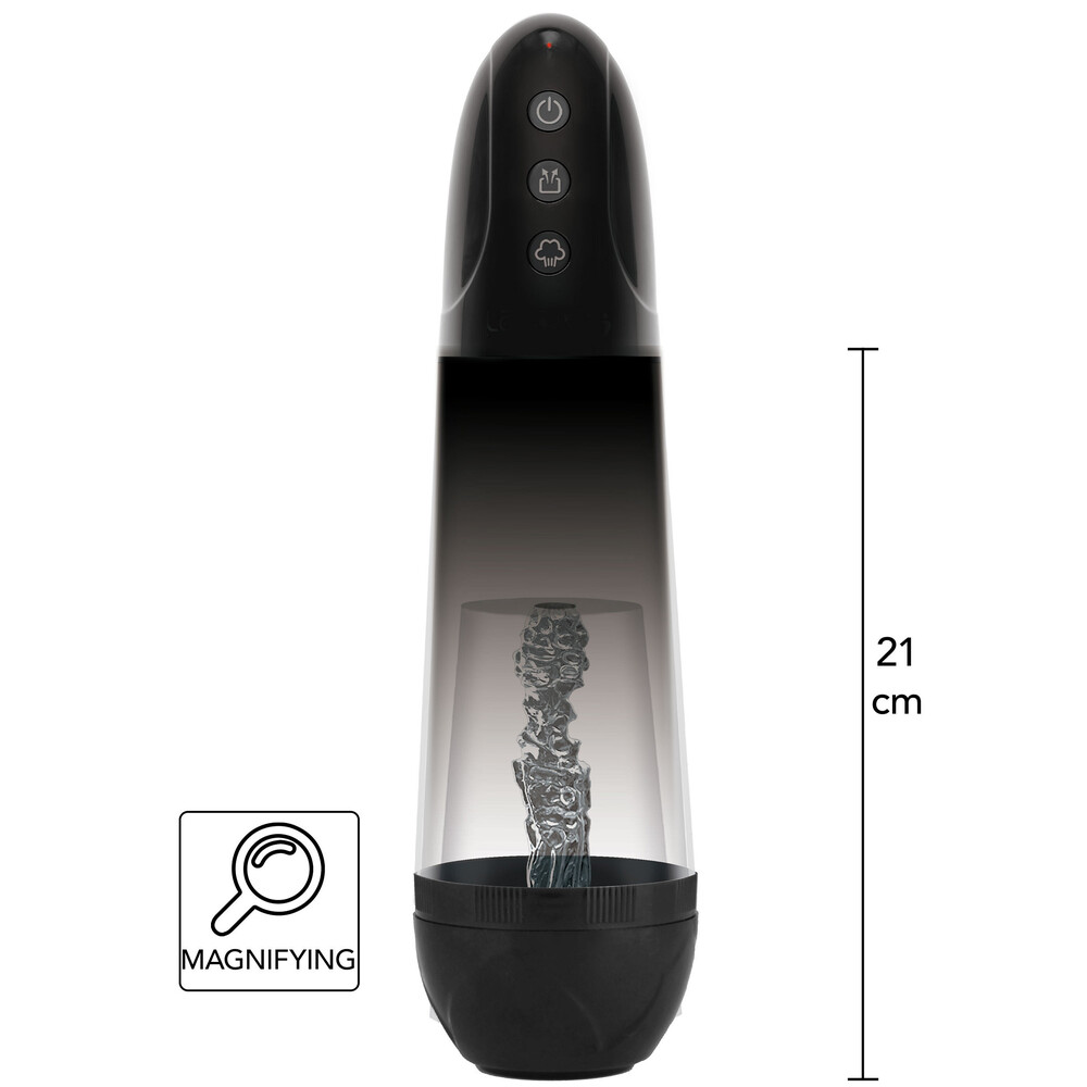 FUSION X by HIDDEN DESIRE is the ultimate collection of penis pumps, crafted for those who dare to push the boundaries of pleasure. The Automatic Magnifying Sleeve Penis Pump is just what you’ve been looking for to achieve extra length, girth and stimulation.Slip your penis in the tube, hold it tight against your crotch and start the automatic pumping motor! The crystal-clear sleeve works as a magnifier that provides incredible visual stimulation. The texture tunnel of the sleeve combined with automatic suction, stroking and visual stimulation leads to the ultimate pleasure. Select the most comfortable suction mode and watch your penis grow bigger and harder. Get ready to boost your size and confidence with FUSION X PENIS PUMPS!Total length:30.5 cmInsertable length:21 cmDiameter:6.5 cmAutomatic PumpMagnifying SleeveQuick Release Button