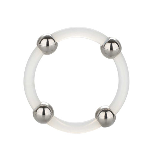 Made to enhance, escalate and intensify ecstasy every time you slip on the Large Steel Beaded Silicone Ring. The sturdy, yet stretchy silicone ring supports while the steel pleasure beads thrill you and your lover. The ultra stretchy and comfortable ring is sure to enhance pleasure by increasing stamina, sensitivity and girth. Look forward to an explosive pleasure experience with every teasing stroke of the steel pleasure beads. This strong, supportive ring indulges your man with increased stamina, girth and sensitivity, while you can savour his increase stamina and girth, the thrilling stimulation beads tease you towards an orgasmic wonderland. The passionate pleasure ring is made of silicone and stainless steel pleasure beads.The large ring has a diameter of 2 Inches